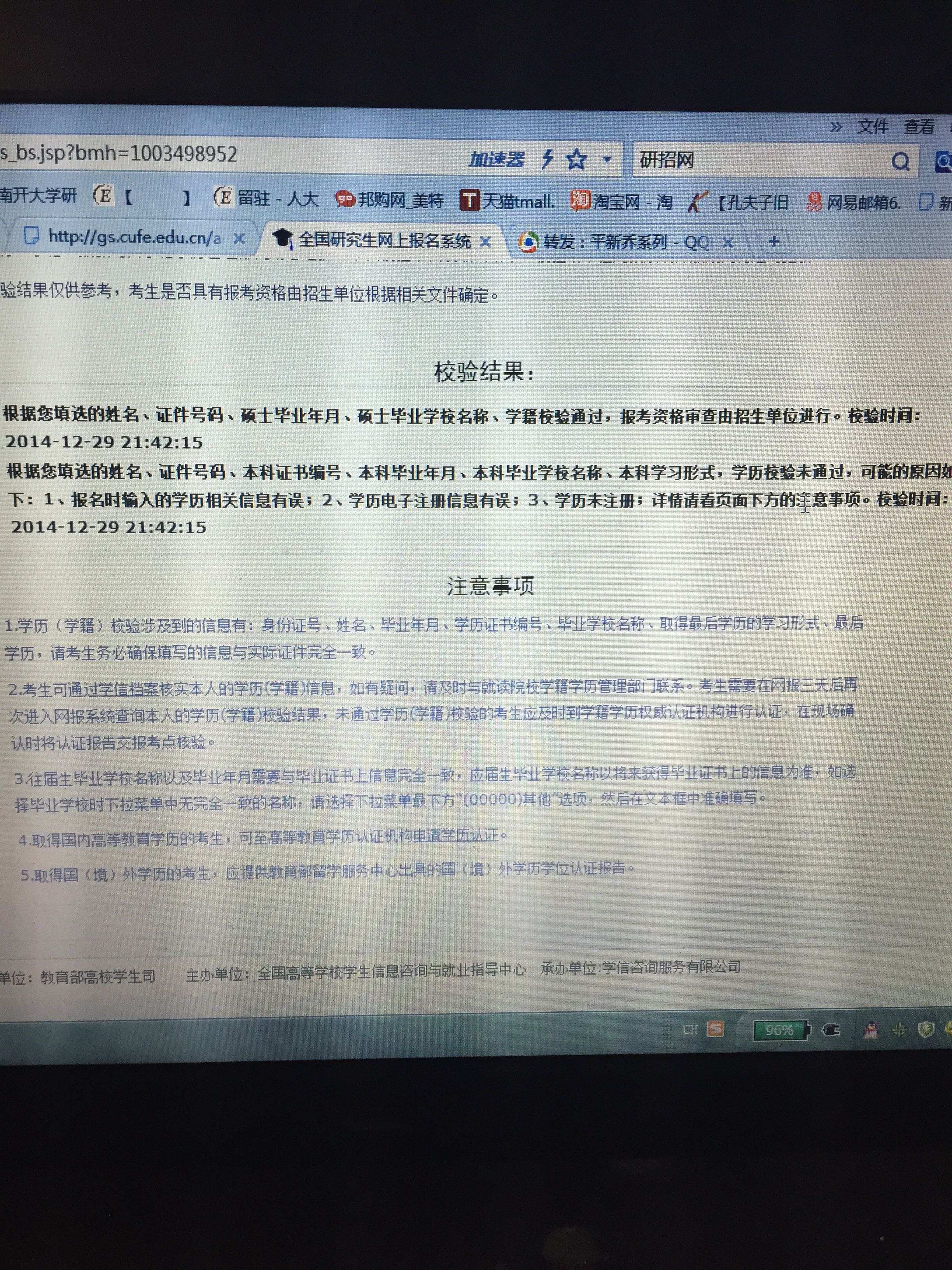 各位有报考央财15年博士的吗 最后的学籍学历检验 学历检验未通过 大家也是这个情况吗 还是只有我是这样的 有那个报名序号应该是报名成功了吧 我看央财关于报名的说明意思学历检验未通过要提供两个认证 好麻烦啊 大家是怎样啊