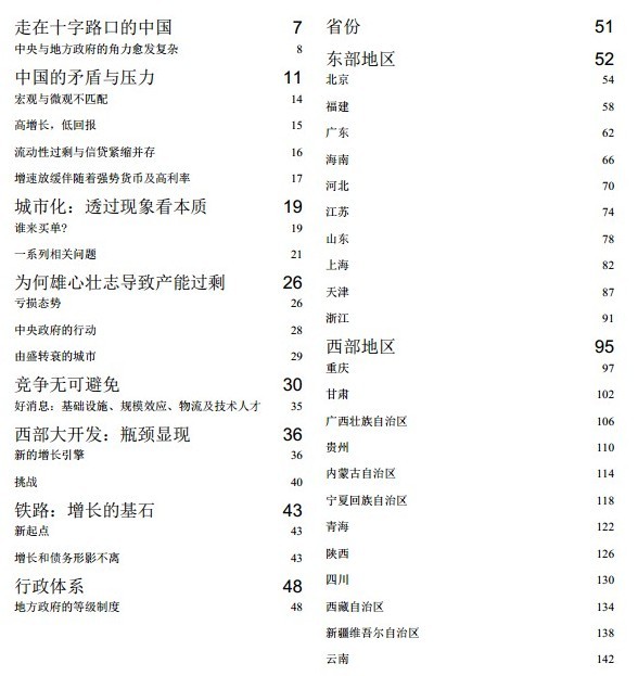 262 页深度报告,除了展示中国4 大区域,31 个省,21 座大型城市的综合数据之外,本报告还就城镇化、制造业、西部大开发、铁路投资等中国在发展中所面临的问题展开分析。