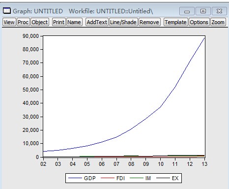 菲菲8小菲菲 发表于 2015-1-6 17:55 顺便附上用了平减指数的GDP和未用平减指数的FDI和进出口额的图。我是想用单位根检验、协整分析和误差修正模 ...