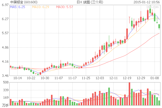 今日建议关注大幅杀跌的中国铝业。。。中国铝业:601600今日大幅杀跌至6.17.而美股 却大涨三日,三天涨幅近20%。7日美股中国铝业公司最高涨至13.51。