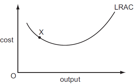 如下图,一个公司在长期平均成本曲线的X点经营.