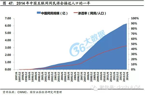 我们可以肯定地判断,移动互联网最快的增长期基本过去,2014 年,我们预计,移动互联网渗透率达到42%,2015 年,当移动互联网的渗透率超过50%之际,就是移动互联网公司用户增速放缓之时。而这种放缓带给行业的影响是多方面的: