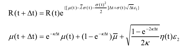 若R(t)、μ(t)、γ(t)进行10个周期的蒙特卡罗模拟模拟,其中ε1、ε2、ε3为随机数, 则ε1、ε2、ε3是应该每一周期重新生成随机数,还是每期用同一组三个值?