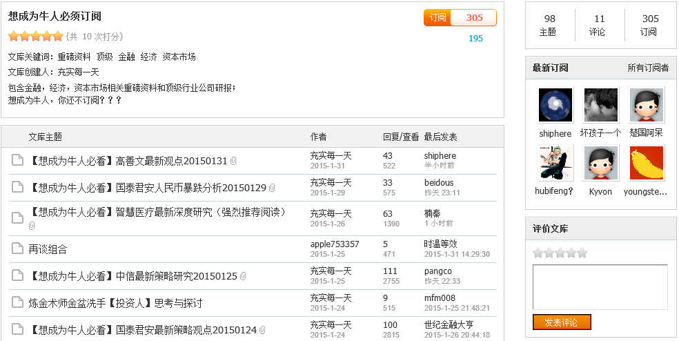 优秀文库,会得到别人捐助的论坛币和订阅,就像一本吸引读者的杂志;