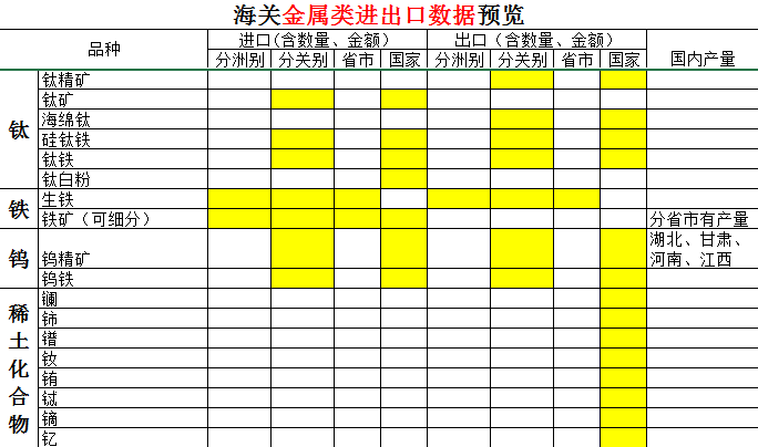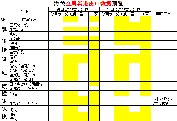 金属类海关进出口数据