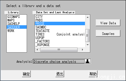 以sasuser中的price为例说明软件的使用:SAS->解决方案->市场研究->找到对应的数据集