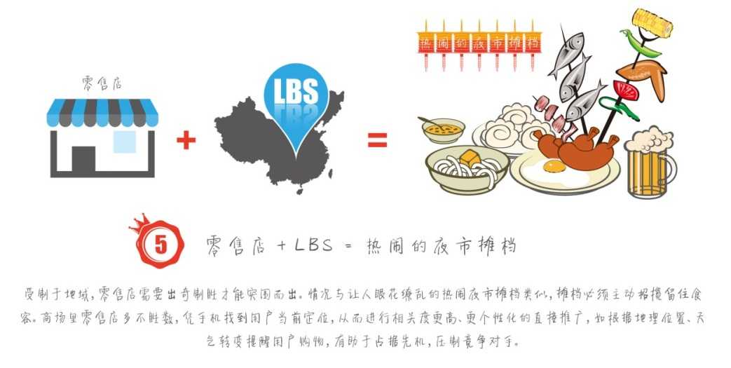 受制于地域,零售店需要出奇制胜才能突围而出。情况与让人眼花缭乱的热闹夜市摊档类似,摊档必须主动招揽留住食客。商场里零售店多不胜数,凭手机找到用户当前定位,从而进行相关度更高、更个性化的直接推广,如根据地理位置、天气转变提醒用户购物,有助于占据先机,压制竞争对手。