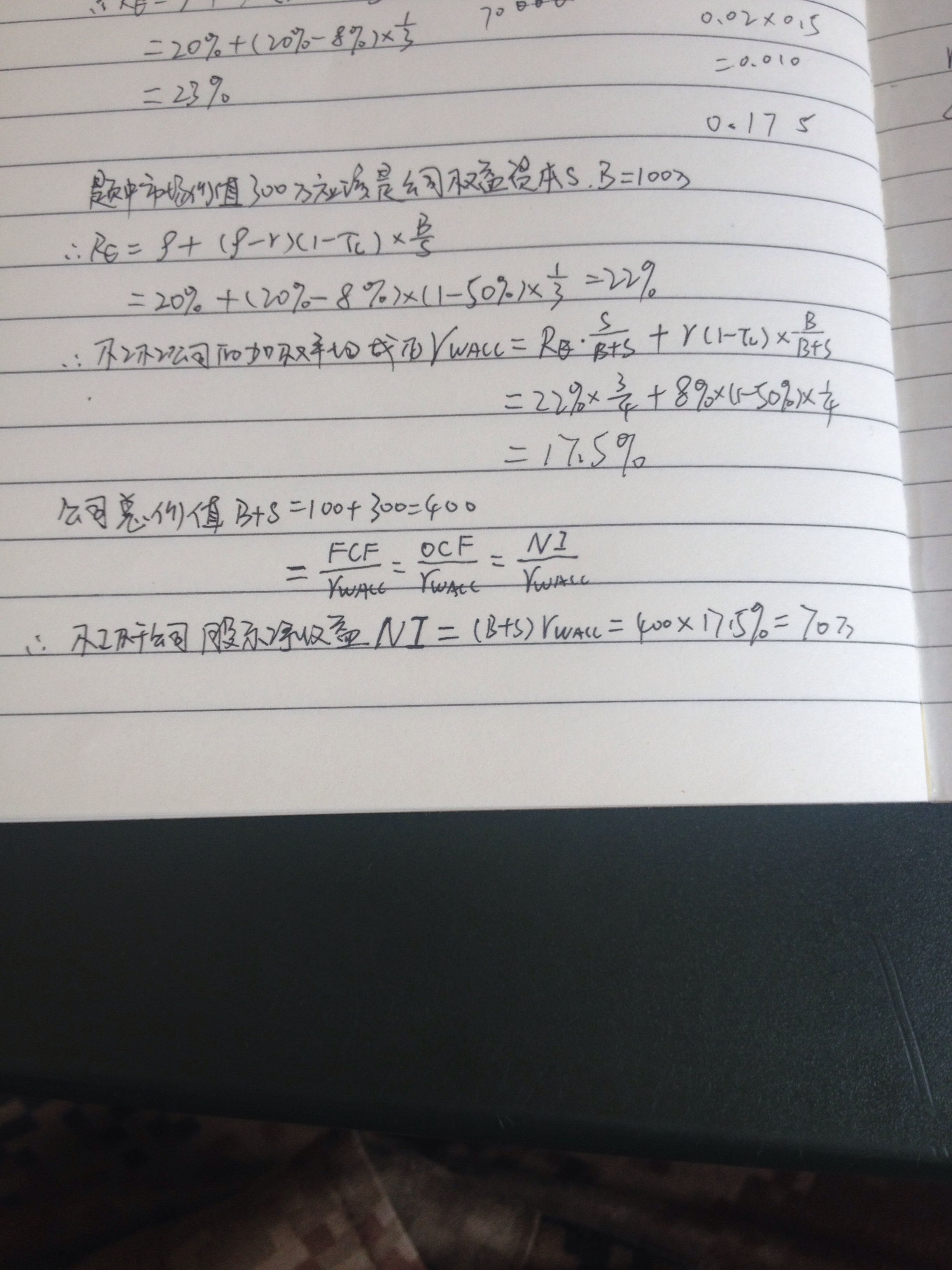 P217 第13题,题中市场价值300万元应该是公司的股权资本S,而B=100万。
