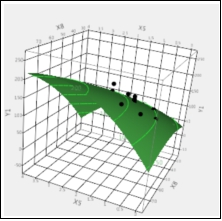 优化设计是指在问题研究的中后期,关键因素已经明确,但需要精益求精,在有限的实验空间中精准地找到使发动机性能发挥到极致的最佳设计。具体的实现手段有两种:一种是经典的实验设计方法,如响应曲面设计等(如图四所示);另一种是高级的实验设计方法,如空间填充设计、