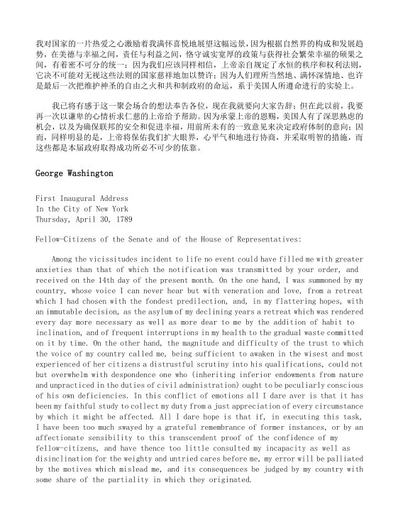 历届美国总统就职演讲译文中英文对照