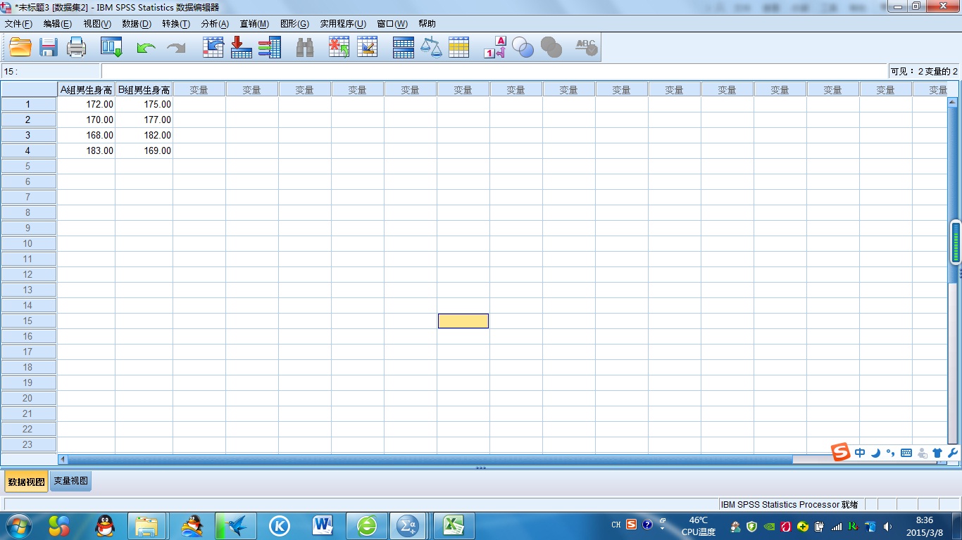 新手求问spss怎么检验两组方差是否相等,如图我有A,B两组身高数据