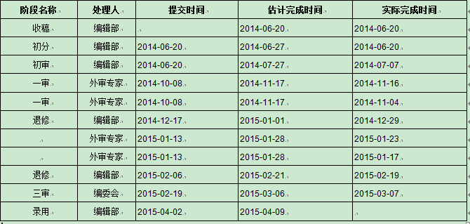 一审 外审专家 2015-03-05 2015-04-14 2015-04-11
