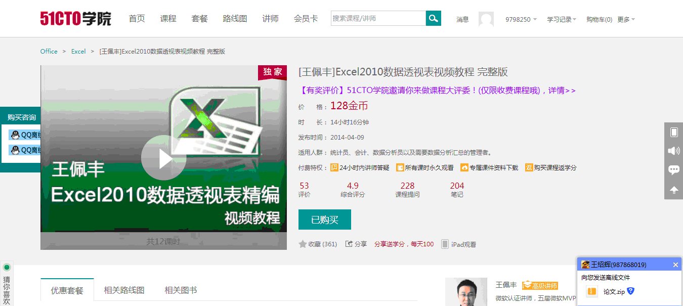 福荣山 发表于 2015-3-10 16:35 好的,因为网上没有资源,这个资料绝对不错,如果你看过王佩丰Excel2010基础视频的话,这个全都是企业级使 ...