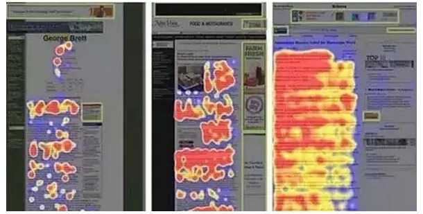 一大波热点图,告诉你用户都在看向哪里?最后发现其实网站上那些一层层的banner其实都是没!人!看!的,因为我们的大脑都会自动屏蔽掉他们!(不管你logo放多大!字有多明显!)