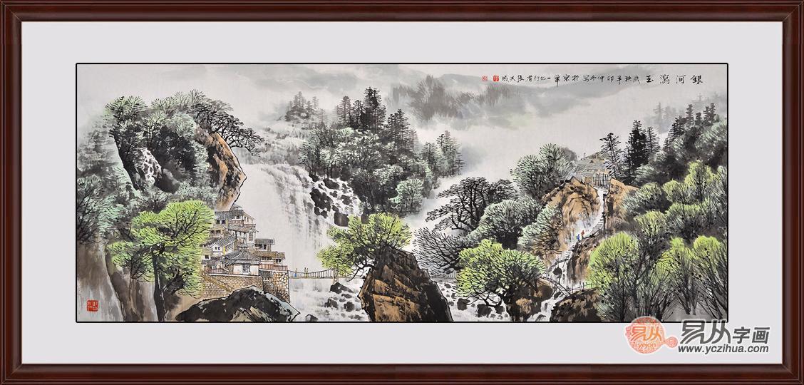 书画名家研究院院士张天成山水画作品《银河泻玉》作品来源:易从山水画
