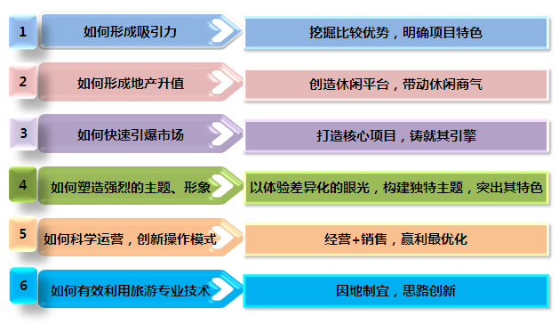 目前,旅游地产在开发方面,主要面临六大关键问题,其相应的解决方法见下图。