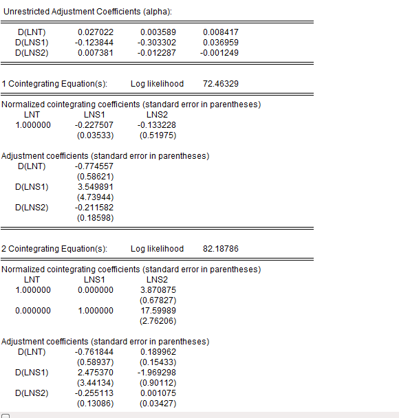 请问怎样根据这个结果写协整方程啊!!!!请赐教,万分感谢!!