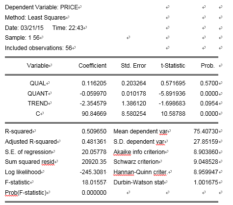 H0是quality的coefficient=0