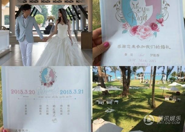 据香港媒体报道,台湾美魔女46岁伊能静(微博)21日在泰国普吉岛同小10岁的内地演员秦昊结婚,举行婚礼的现场照曝光,地点位于海边附近,配合周围树木同草地的环境,极具阳光气息,婚礼在乐古浪度假区举行,据请柬上显示,二人21日上午11点迎亲敬茶,下午两点外景拍摄,4点半举行婚礼仪式,夜晚7点半举行婚宴,10点半就有餐后酒会。