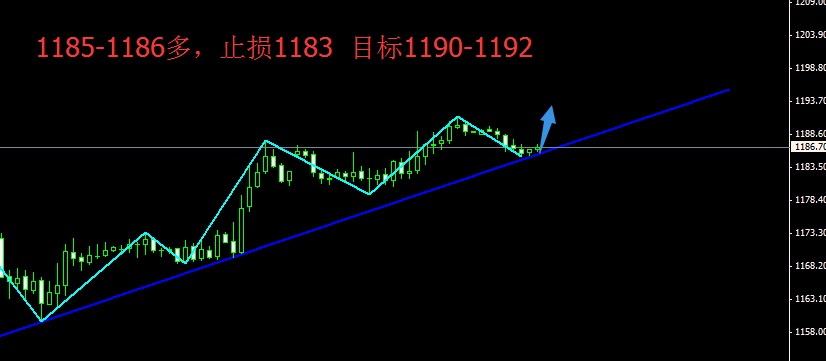 因此,我们已经在1185-1186一线先买入,止损放在1182.5,目标1190-1192即可!