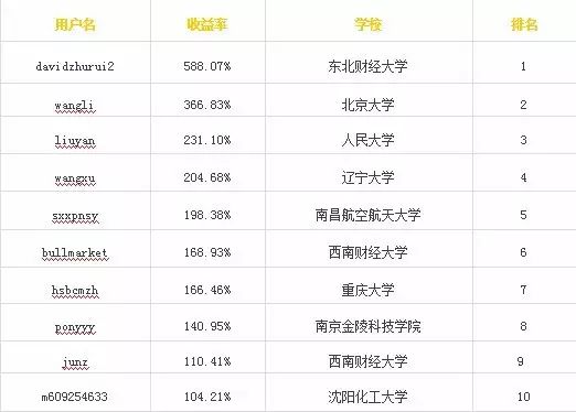 本次比赛在2015年1月1日到3月14日期间面向中国大陆地区所有高校学生举行,清华、北大、人大等诸多高校学生踊跃参与,比赛战况异常激烈。前4名同学的收益率都超过200,冠军朱锐同学的收益率更是高达500以上。现在让我们回到中关村创业大街黑马会咖啡厅的颁奖会吧 。