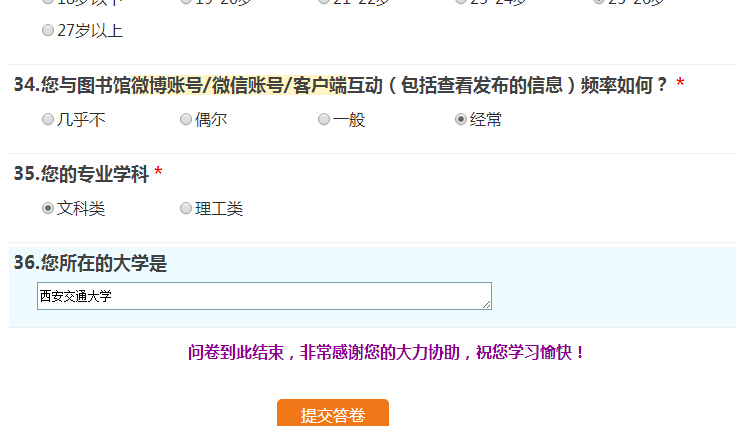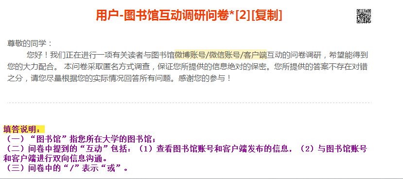 zhanghui123 发表于 2015-3-30 09:22 一份有关“用户-图书馆”互动的调研,填写要求: ①调研对象为在校大学生 ②填写 ...