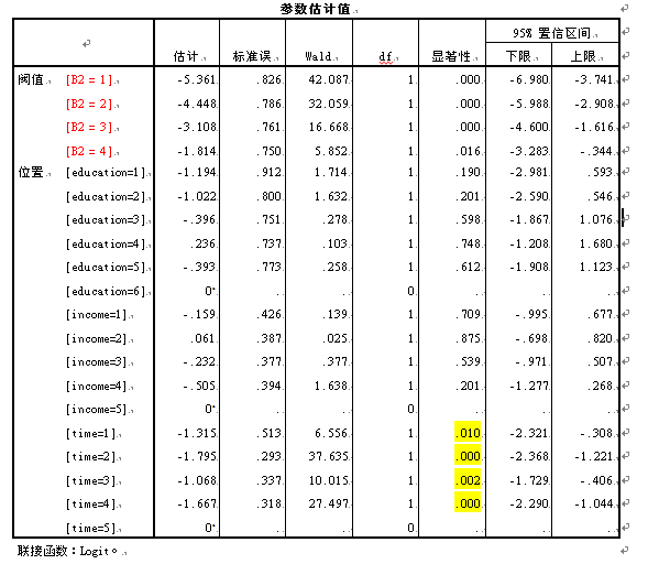 ‖什麽 发表于 2015-4-1 20:35 文科僧没学过书学···自学spss很吃力,求助各位大神,spss中的多项有序回归分析的结果怎么解读?? 那个 ...