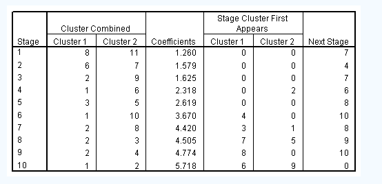 如图所示,上图是系统聚类的结果。如何分类呢?标准是什么?我看书上说:对于聚类分析冰挂图,图中的缺口就是分类的标准,在此我们想将样本分成三类,就需要找图中最长的两个缺口,因此样本就分为如下三类。具体是怎么分类的?
