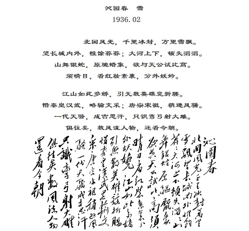 惜秦皇汉武,略输文采;唐宗宋祖,稍逊风骚。