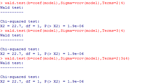 在R里面怎么对回归系数进行wald检验,比如c3=0或者c4=0