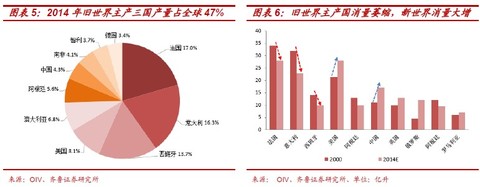 (一)世界葡萄酒发展全景:新世界是未来消费增长的主区域。