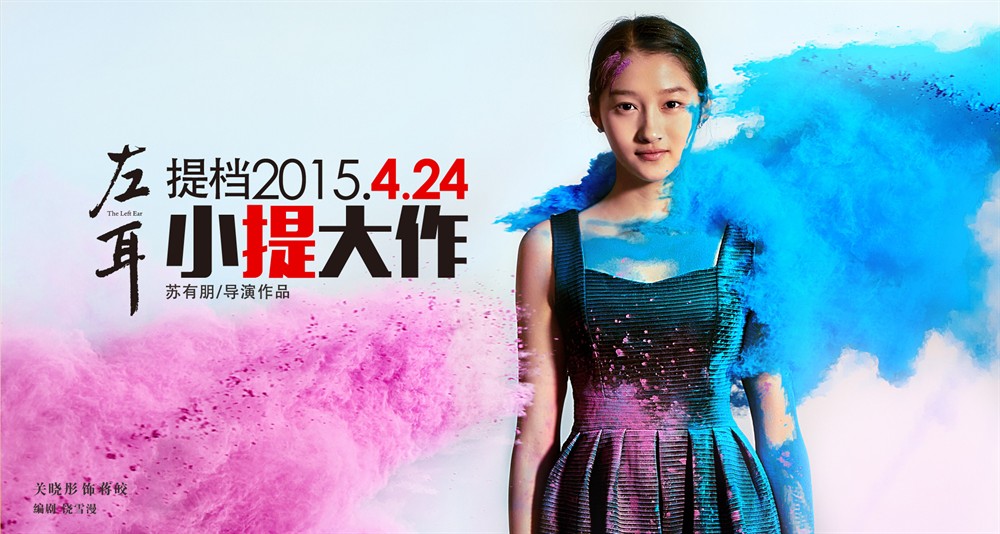 随着清明档的渐行渐远,新一轮的国产大片也即将来袭。前有4月17日范冰冰主演的《万物生长》上映,后有杨幂主演的《何以笙箫默》于5月1日上映,《左耳》电影夹在两者中间,不知能不能杀出一片天呢?更何况中间还会有《速度与激情7》的猛力夹攻,以及《贵族大盗》《疯狂外星人》的攻势。不过我还是非常看好左耳这部电影,毕竟是苏有朋的处女作,而且左耳电影的演员也是一个个清一色的少男少女,加上胡夏献唱的《美好的昨天》也成为影片主题曲。使得左耳上映时间也提档到了4月24号,从原来的4月30号提上来的。所以左耳上映时间提前,我们应该在看完左耳预告片后对于想快点看到影片的影迷来说影迷来说是很兴奋的吧?!左耳电影,苏有朋导演,飙一句经典语录:爱对了是爱情,爱错了是青春!