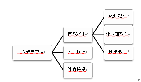 如果我们将子女教育的成果“简化”成处理具体问题的能力,从而在相对完整的逻辑 框架下思考这个问题,就会发现经济学的作用。现实生活中一个优秀的个体需要具备多方 面的素质,我们可以把这种综合素质看作处理各类不同类型问题能力的加总。那么综合素 质由什么决定呢?根据 Heckman和 Mosso (2014) 的思想,它由个人的技能水平、努力程度 和外界的教育投入决定。为了简化讨论,我们重点关注技能水平——它包括认知能力、非 认知能力、生理和心理的健康水平三大部分(见图 1)。那么个人不同时期的技能水平又是 如何受其他因素影响的呢?