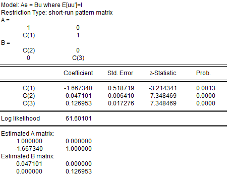 SVAR模型用A B矩阵估计出来的结果怎么看呢?都是什么含义