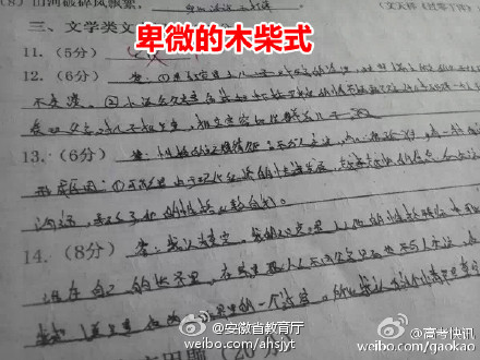 北京一女高中生的高考答题(0分)