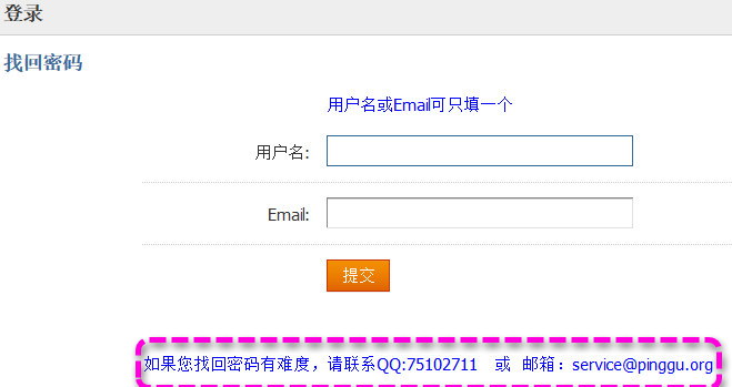 论坛有『找回密码』的机制 如图