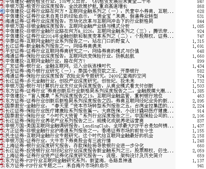 2014-2015金融证券保险服务行业研究报告,目录如下图