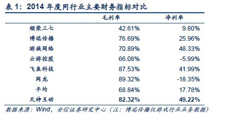 精品页游盈利能力超强,持续打造品牌影响力。 天神是国内顶尖网游研发商, 经典作品《傲剑》 13 年营收 5.27 亿,《飞升》 13 年营收3.2 亿。 14 年天神略超承诺实现扣非净利润 1.91 亿元,同比增长41.85%。 14 年天神成为腾讯平台页游研发商开服数第二名,自研《梦幻 Q 仙》、《飞升》、《天神传奇》均进入前 10。《傲剑 2》累计开服已赶超《傲剑》;首款登陆腾讯 3D 微端页游《苍穹变》流水稳定在 3000万以上,并作为唯一国产自研页游戏入选首届 WCA 正式比赛项目。