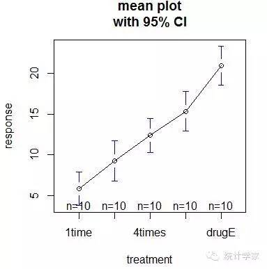 #绘制各组均值及其置信区间的图形