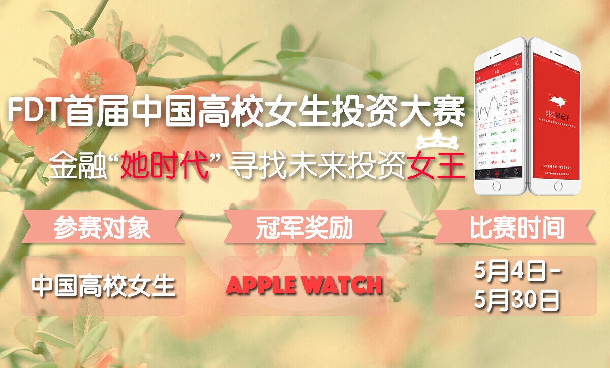 Duang!Duang!Duang!2015「FDT首届中国高校女生投资大赛」重磅来袭!在这里把你的金融梦想变成现实,Make it Happen!此次比赛面向中国所有高校女生,女生专场,11000总奖金,冠军大奖最新款apple watch等着你。