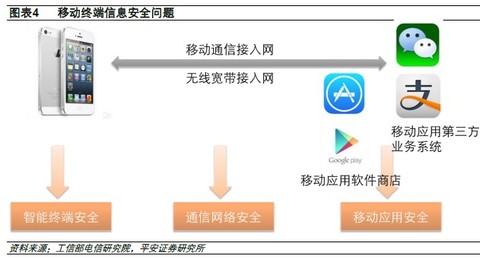 移动终端安全在于把握碎片化的信息长尾。随着智能手机普及率的提高,移动终端成为了碎片信息最为依赖的入口。移动云联网的収展颠覆了传统的事八理论,铸就了长尾效应,却在碎片化信息的背景下留下了安全隐患。尤其是在目前云联网商业模式蜂窝式繁殖的情冴下,由点及面地威胁着生态系统的安全。本篇安“芯”系列报告,我们就以碎片化的信息长尾为重点,树立了移动终端信息安全的三个层次,即基础层、附加层和应用层。