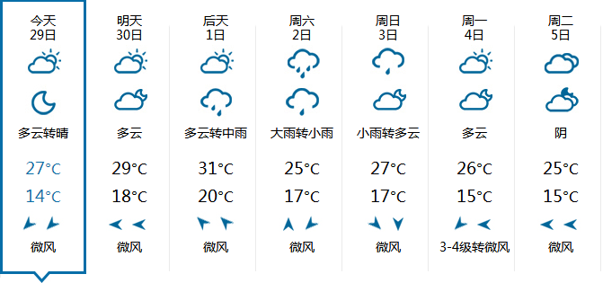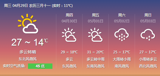 黄山天气预报一周:2015.04.29 ~ 2015.05.05