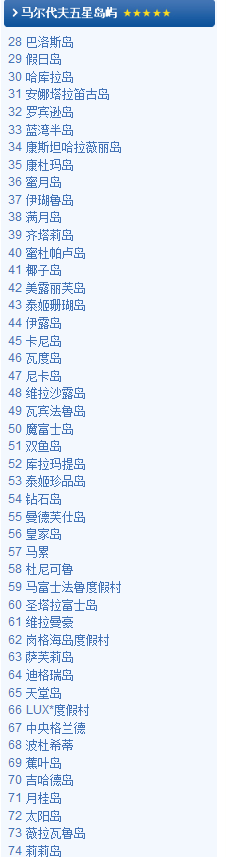 马尔代夫岛屿排名