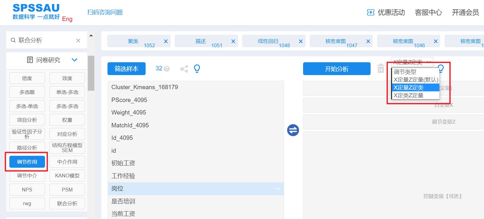 1. **构建模型**:在你的回归方程中加入自变量(X)、调节变量(M)和它们的交互项(XM)。如果自变量也是连续型,则模型可以表示为: