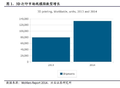 3D打印逐步打开成长空间,国内迎来产业发展契机。全球3D打印产业已步入成长阶段,势不可挡。预计到2016年全球打印市场规模将达到100亿美元,市场规模实现指数级增长。我们预计未来3-5年国内3D打印迎来?窗口?期,潜在市场需求巨大。3D打印产业应用前景广阔,超越传统,广泛应用于工业制造、军事、建筑、医疗、汽车等领域。未来3D产业发展需要民用板块、模具设计和军工制造三架马车来带动。