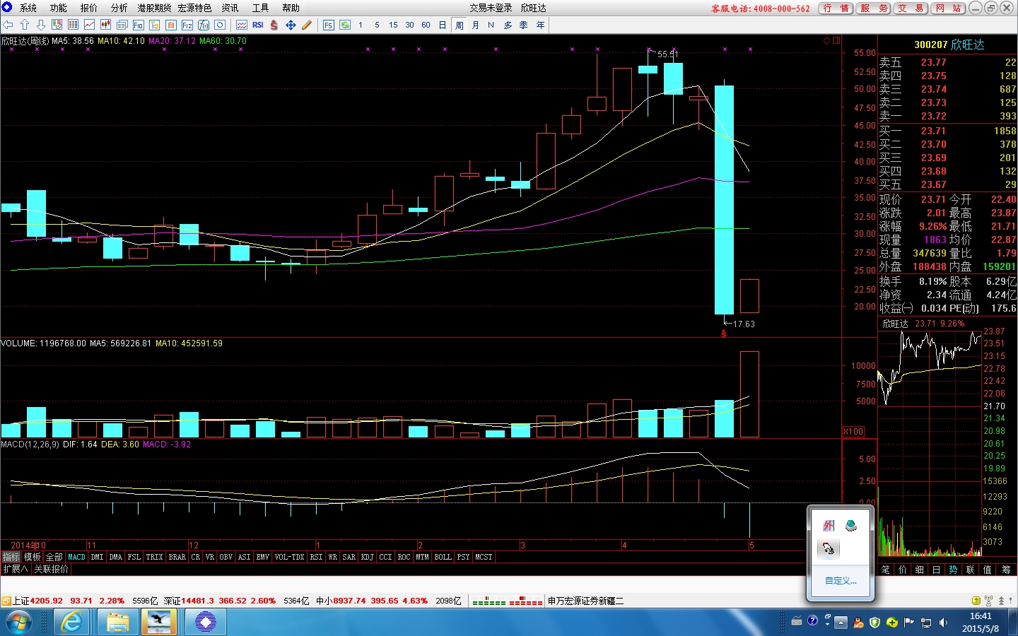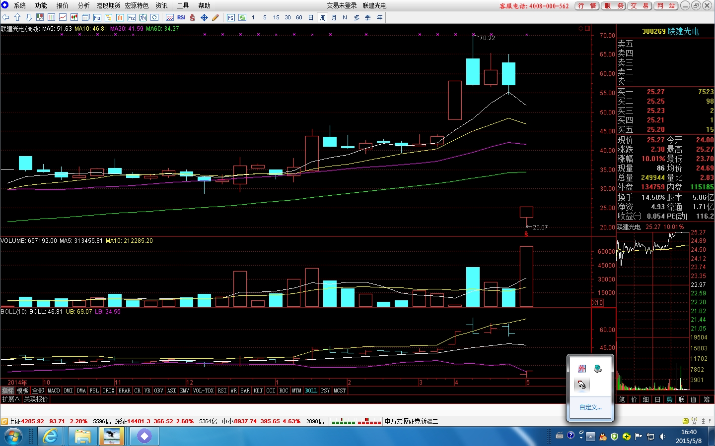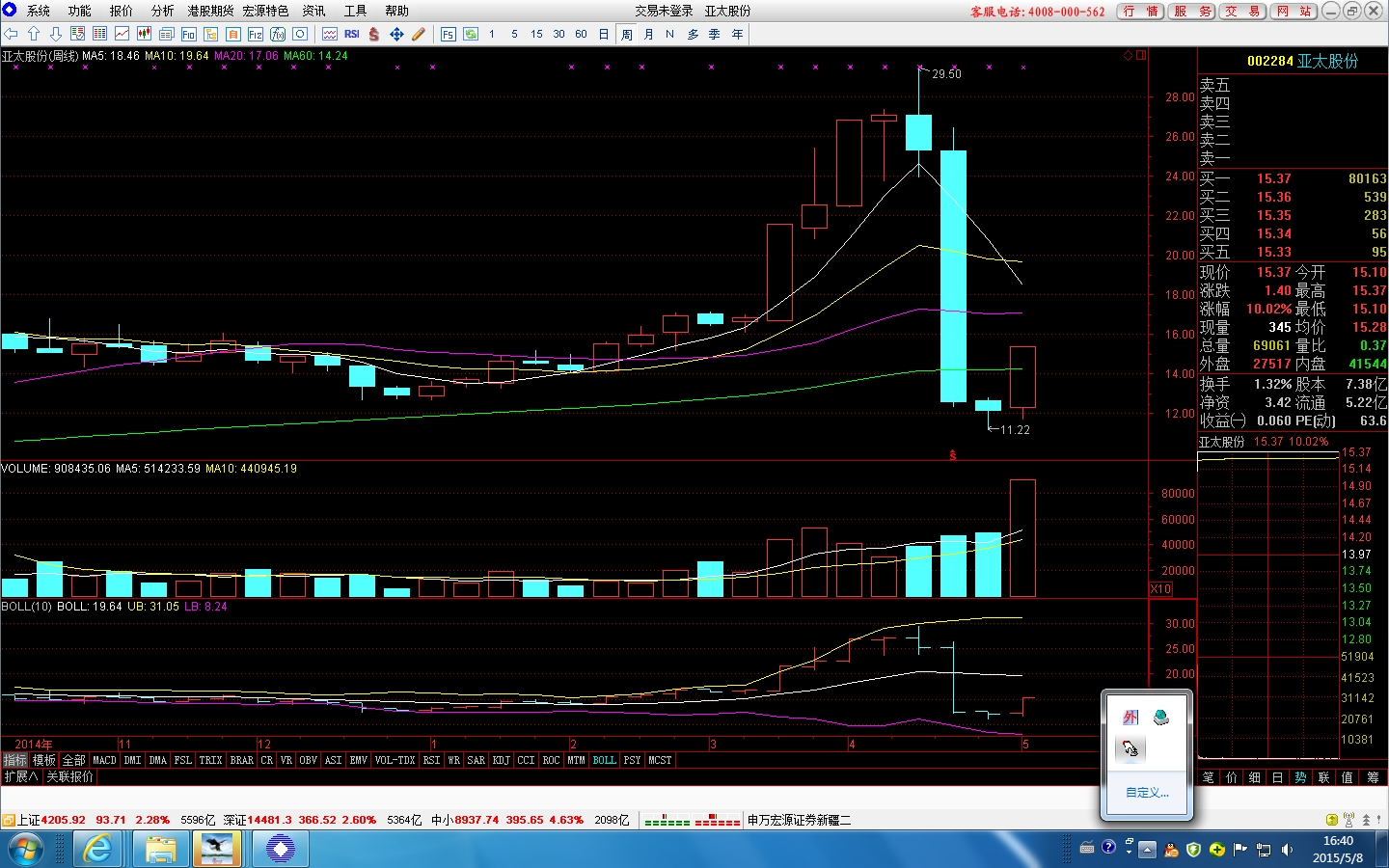 403547154 发表于 2015-5-8 20:03 发哥,那前两周的600705和002412走势会怎样啊?是继续持有还是换上述品种啊?