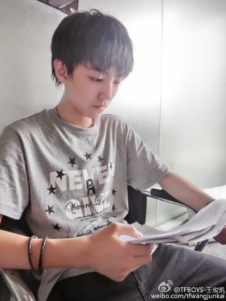 TFboys队长王俊凯在自己的微博中晒出一张自己读剧本的照片。他还和粉丝们分享了自己背台词的心得:“下个月就要进组了,把看剧本记台词什么的当成小说来看,就真的很简单好么。”