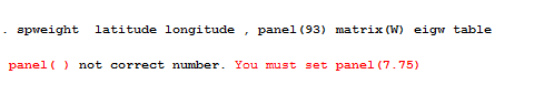我在用spweight命令根据经度和纬度生成权重矩阵时遇到了一下问题,请各位指点迷津!谢谢!