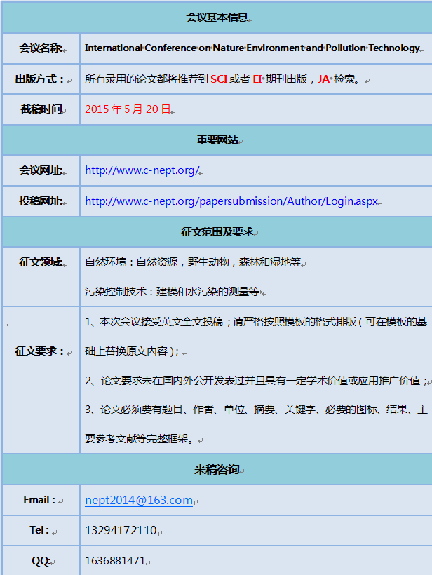 International Conference on Nature Environment and Pollution Technology[size=10.0000pt]