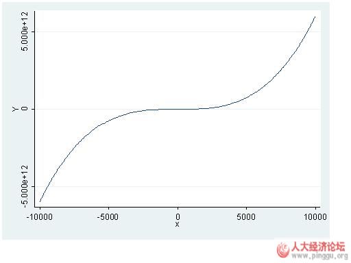 twoway function Y=300+4*x+5*x^2+6*x^3,range(-10000 10000)